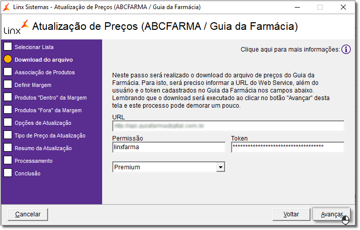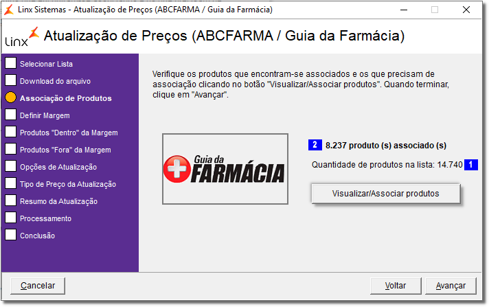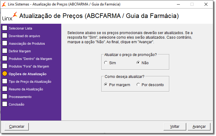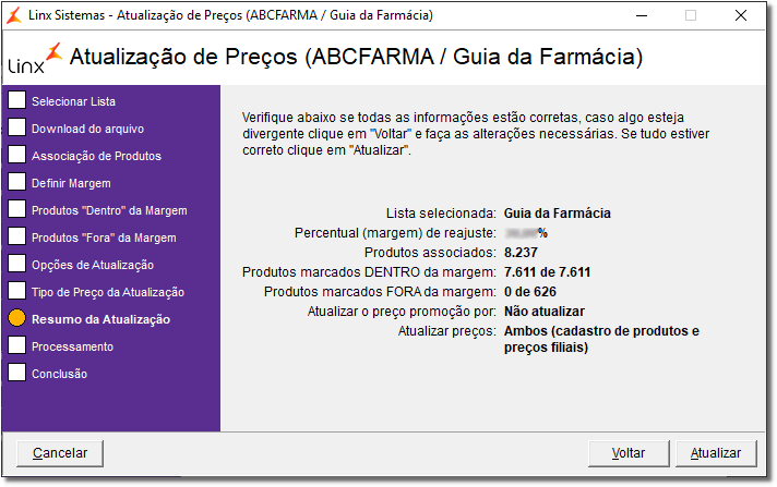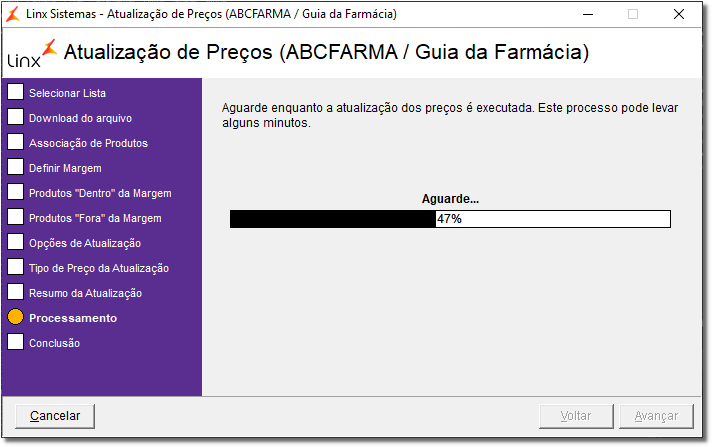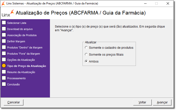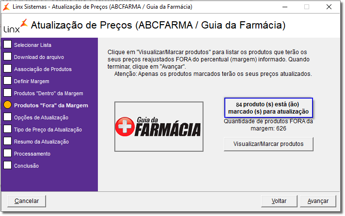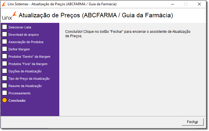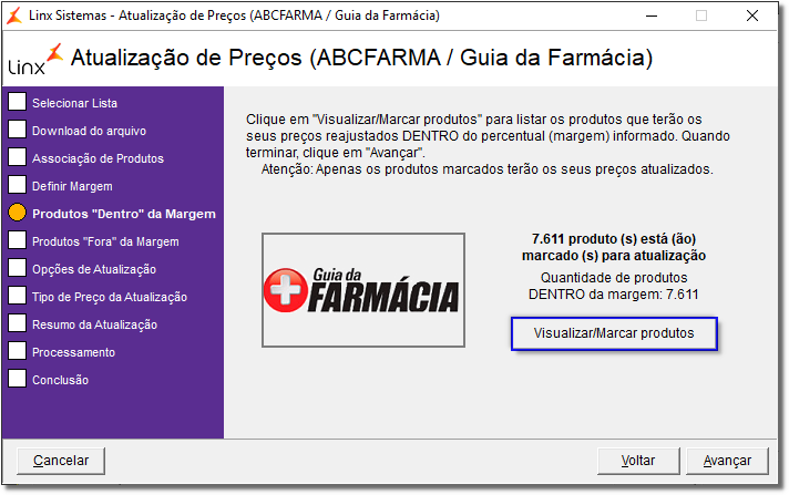 Se a lista selecionada for a ABCFarma verifique como utilizá-la através do artigo Atualização de Preços no Linx Farma Big - ABCFarma.
