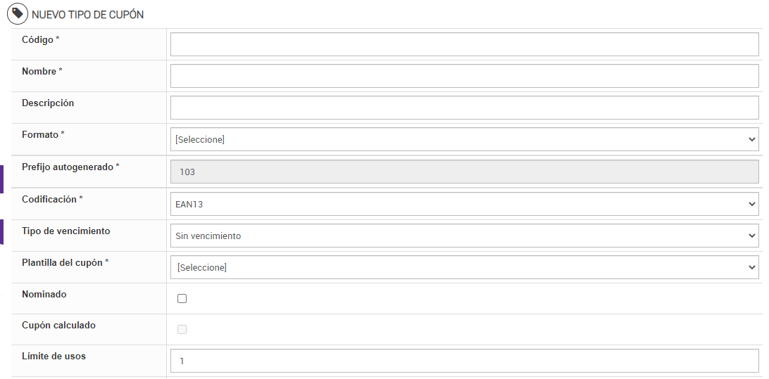 Con esta definición se indicara que la promoción dará como beneficio el valor que tenga cargado en la base de datos el cupón ingresado.