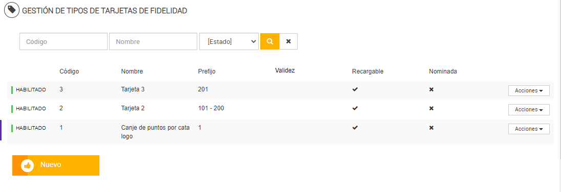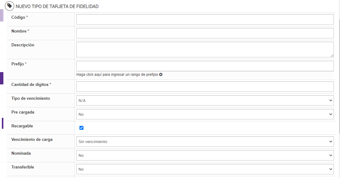 También es posible generar tarjetas de fidelidad, pudiéndose dar de altas distintos perfiles de tarjetas de fidelidad como ser por ejemplo, GiftCard, monederos o tarjetas de punto, podrá gestionarse el saldo, asociarlas a clientes y permitir su participación en promociones para incrementar o disminuir su saldo según la promoción que se aplique.
