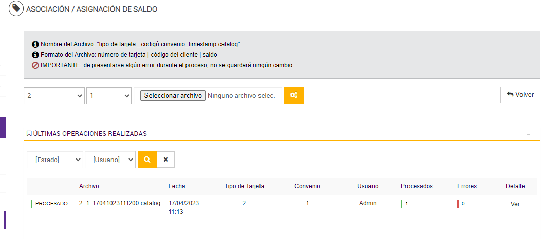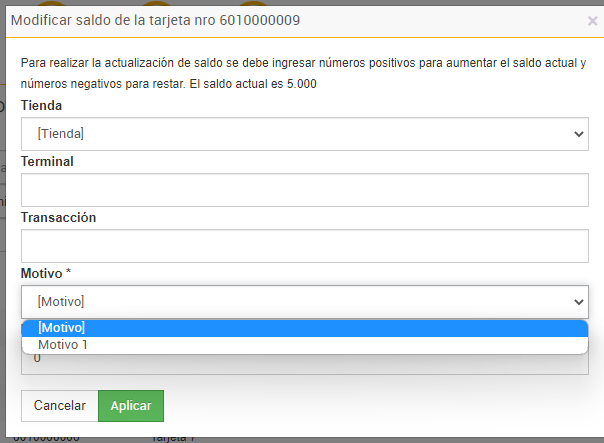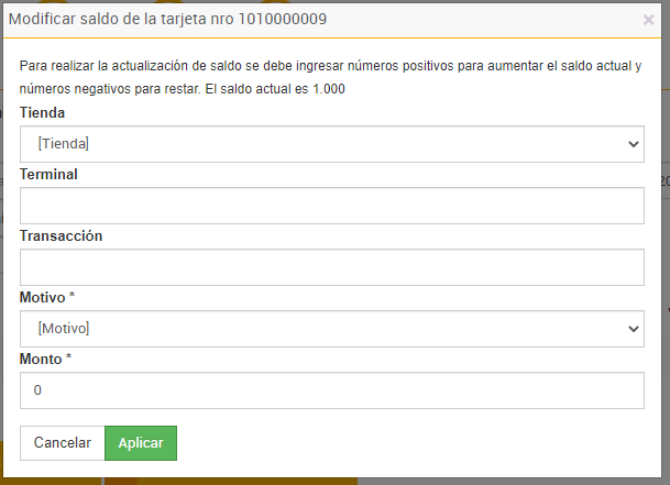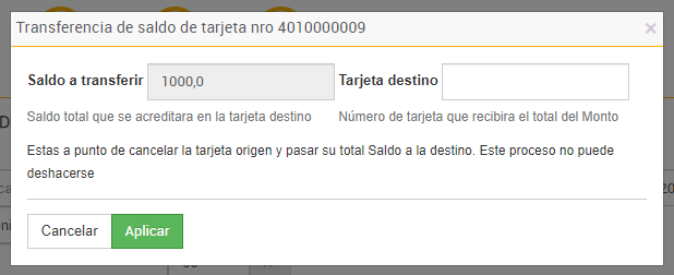 En cuanto a las tarjetas, en caso de querer restituir o quitar saldo, durante el proceso de devolución, y la tarjeta estar cancelada, vencida o no tener saldo en caso de que deba quitarse, se informara de dicha situación en el log de PROMO y el estado de la tarjeta no sufrirá cambios.