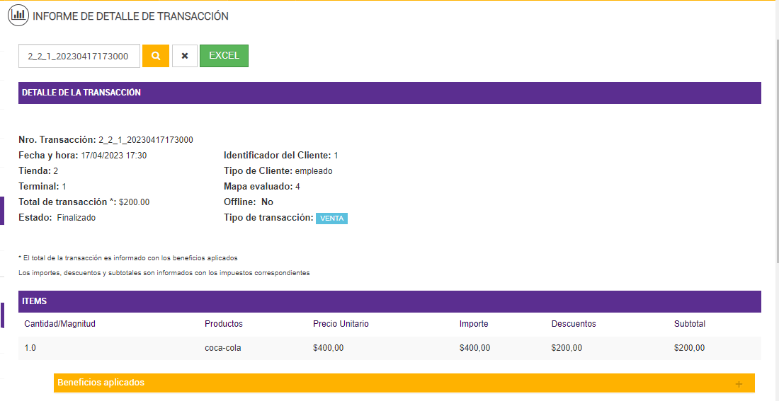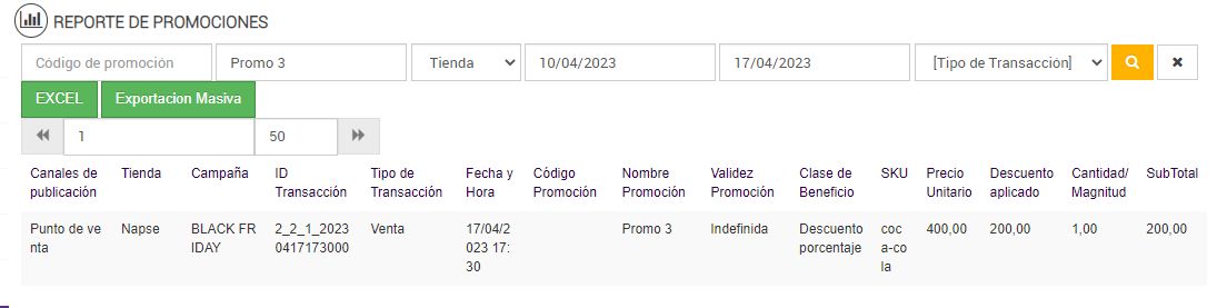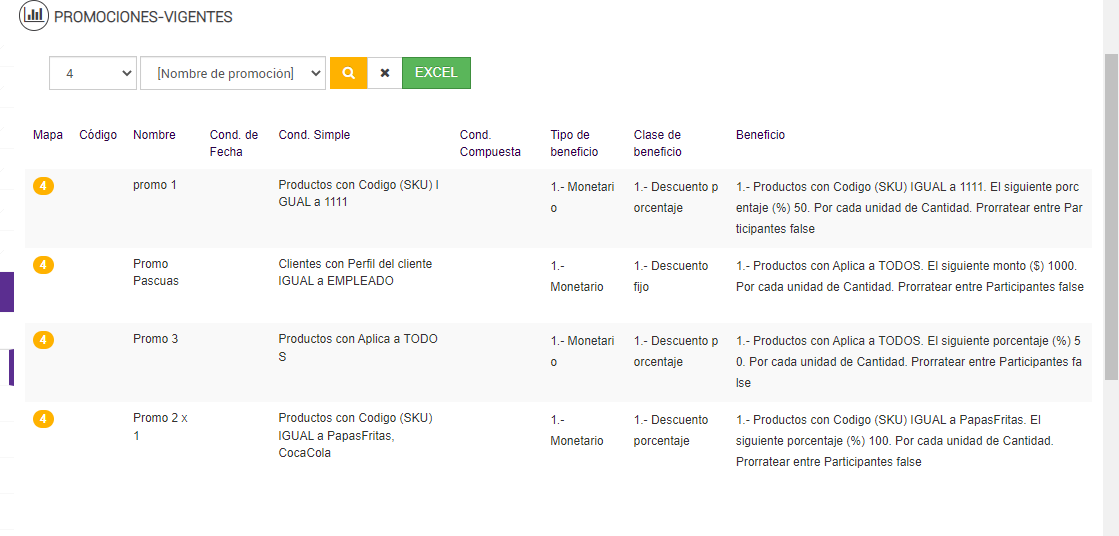 - La promoción Reportara participantes, por lo que el motor informara al punto de venta que elementos de la transacción ovacionaron la aplicación del beneficio.