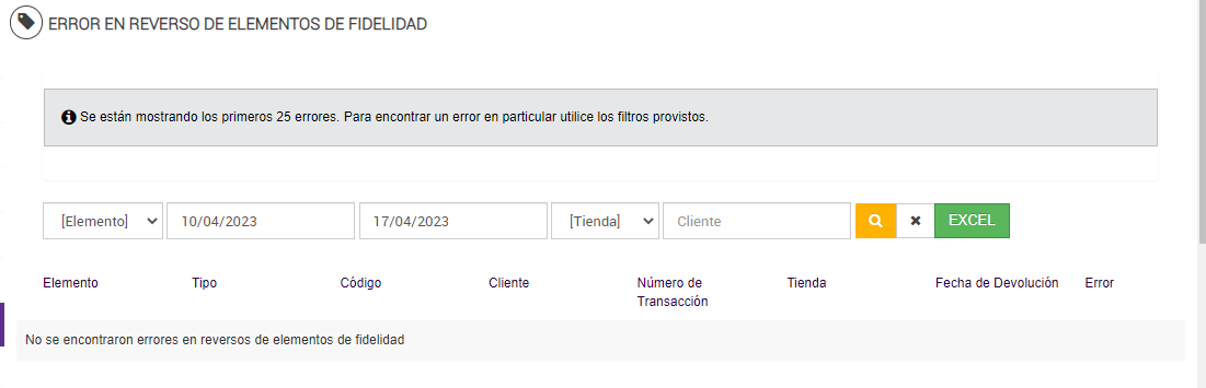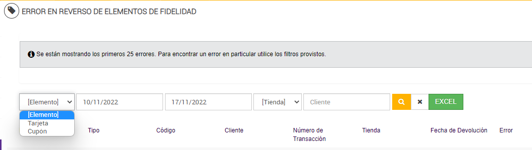 Al momento, cualquier error durante el proceso de la transacción de devolución será informado en el log de PROMO (...\Server.log) y la tarjeta o cupón involucrado en la devolución no sufrirá cambio alguno.
