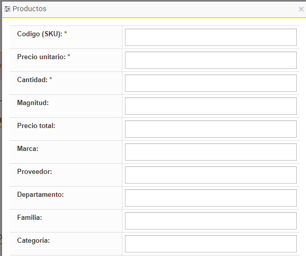 Para ello, daremos clic en el icono del "Lápiz" que se encuentra a la derecha del elemento "Producto" y se nos mostrara el siguiente Pop Up.