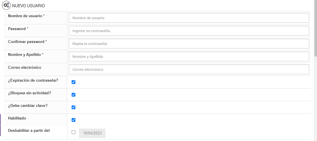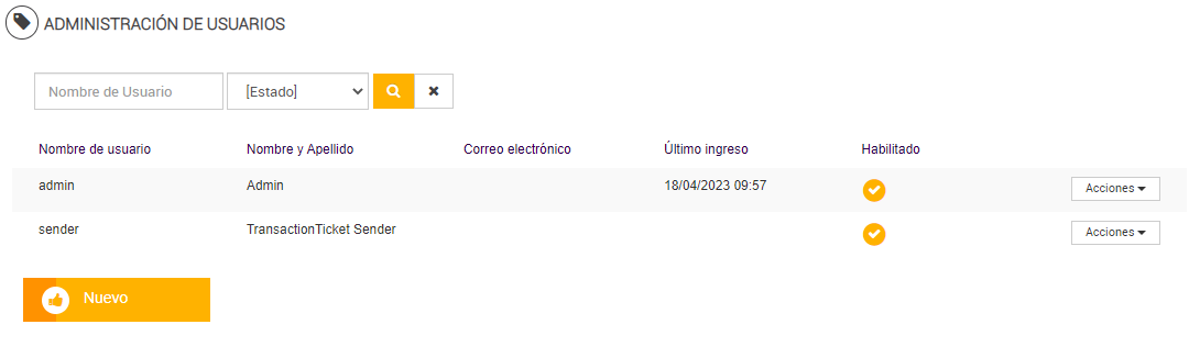 Se describen la operatoria de administración y configuración de usuarios y accesos.