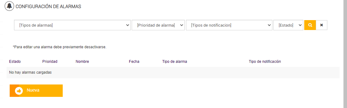 Se describen la operatoria de configuración y notificaciones de alarmas.
