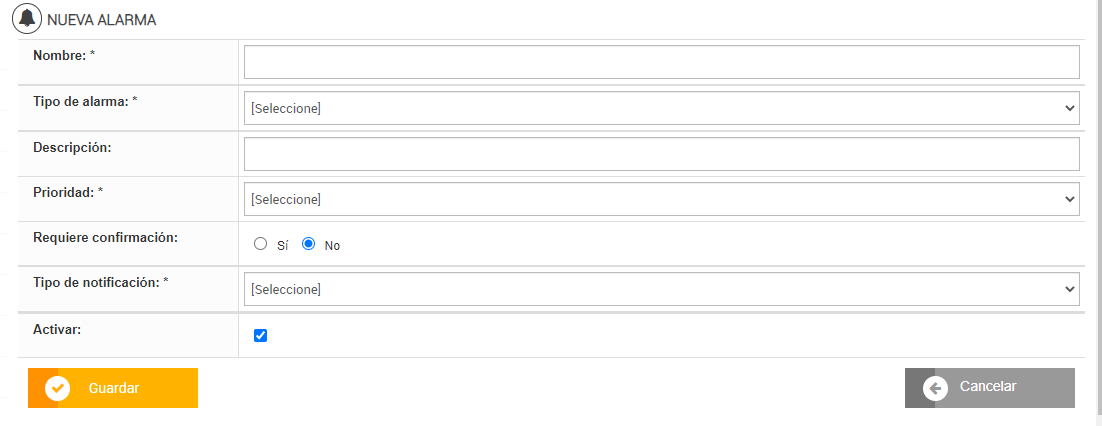- Definir y administrar Alarmas. Componente responsable: la consola de administración.