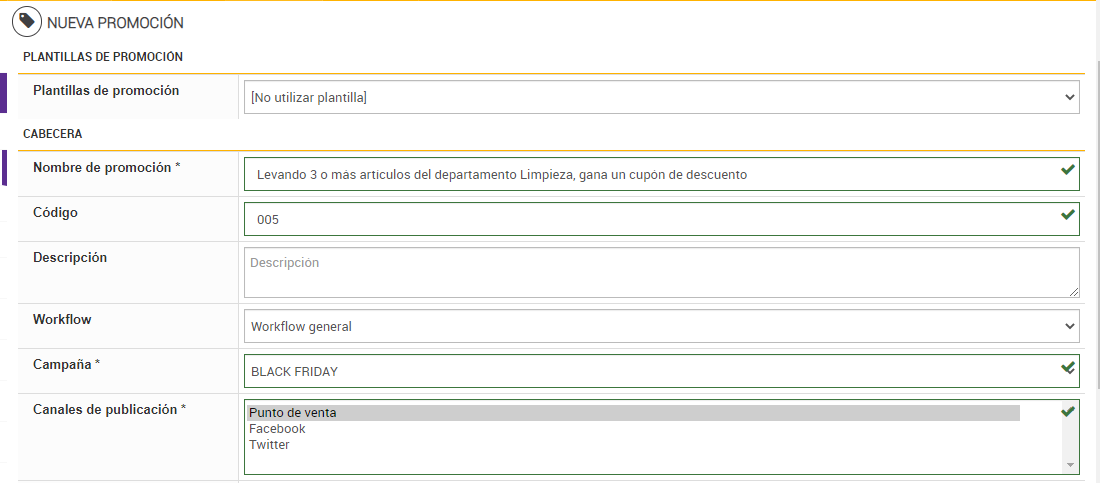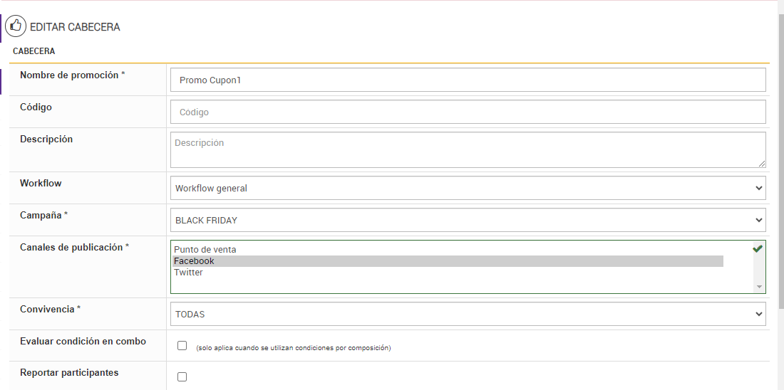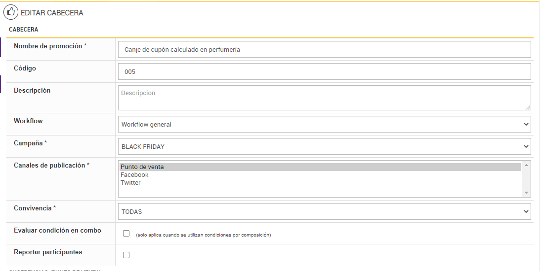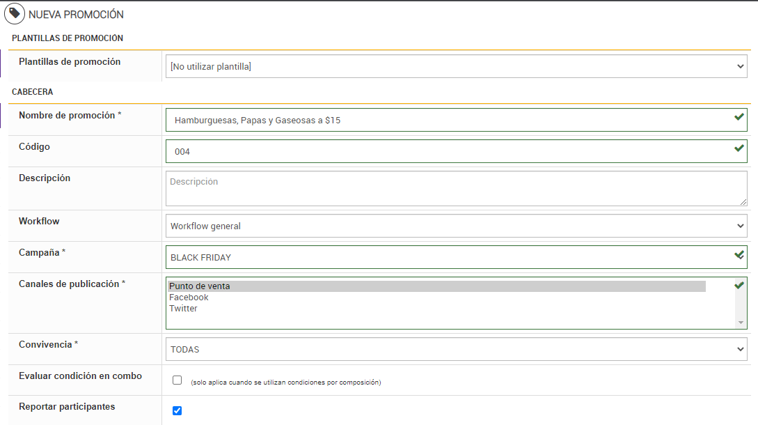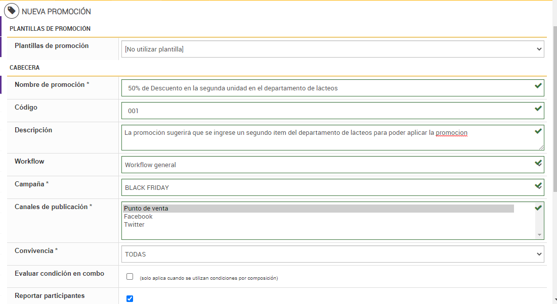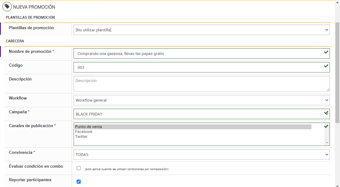 - En este caso la promoción no tendrá habilitadas las sugerencias ni reportara participantes.