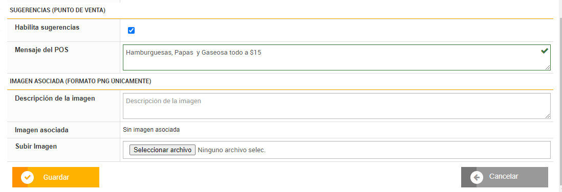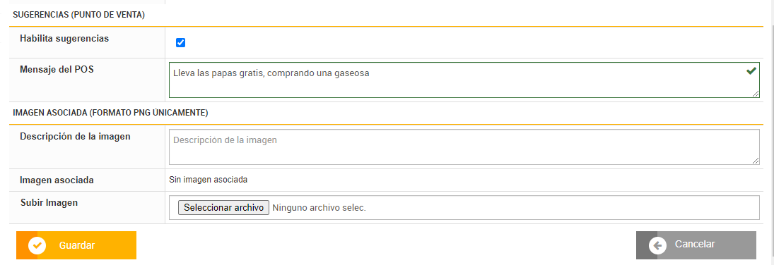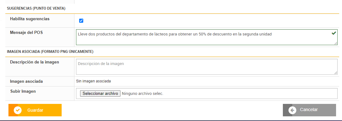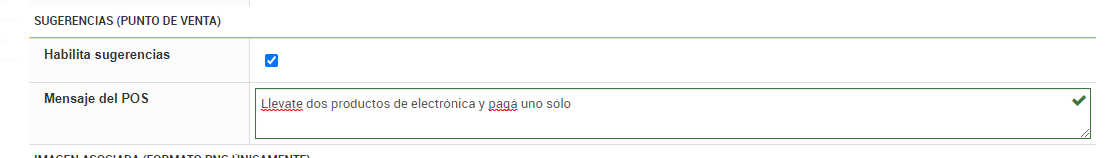 - En este caso la promoción no tendrá habilitadas las sugerencias.