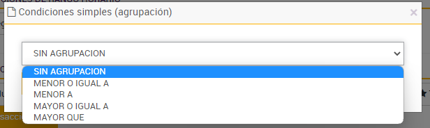 Donde aquí se deberá de seleccionarse la opción "Mayor o Igual a" para agrupar los elementos.