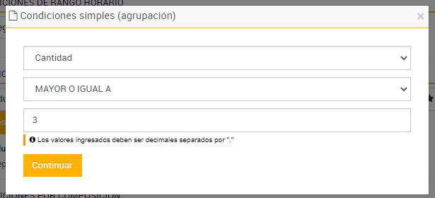 Presionar "Continuar" y la condición quedara definida de la siguiente forma: