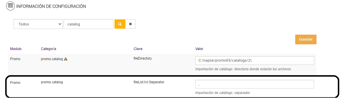 La utilización o no de los catálogos para la evaluación de colisiones podrá definirse desde Administración >> Información de configuración >> Modulo: PROMO >> Categoría: promo.map.collision use.item.catalog