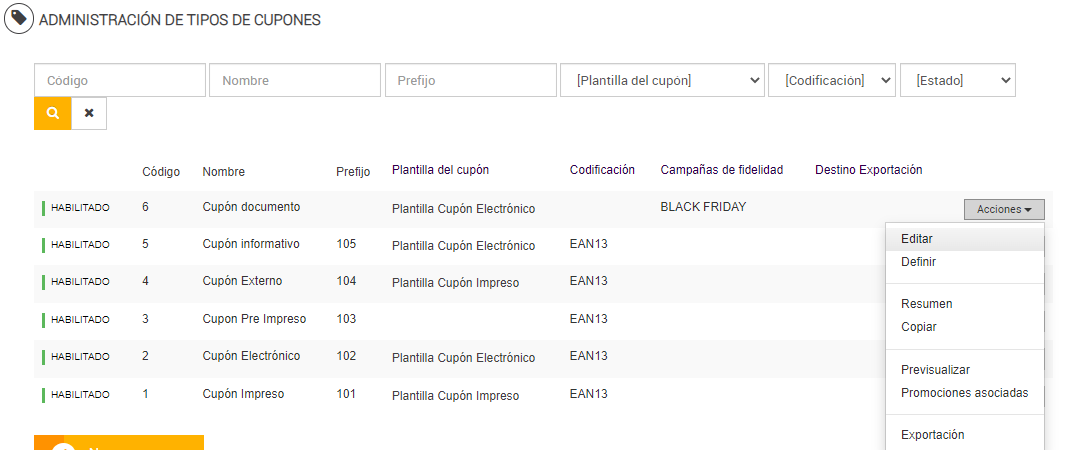 Se describe la operatoria para la creación, edición y administración de los elementos de Loyalty (Cupones y Tarjetas)