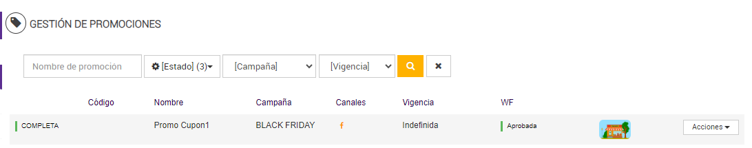 Deberá chequearse que la promoción aparezca como "Completa" ya que de esta forma podrá ser incluida en un mapa.