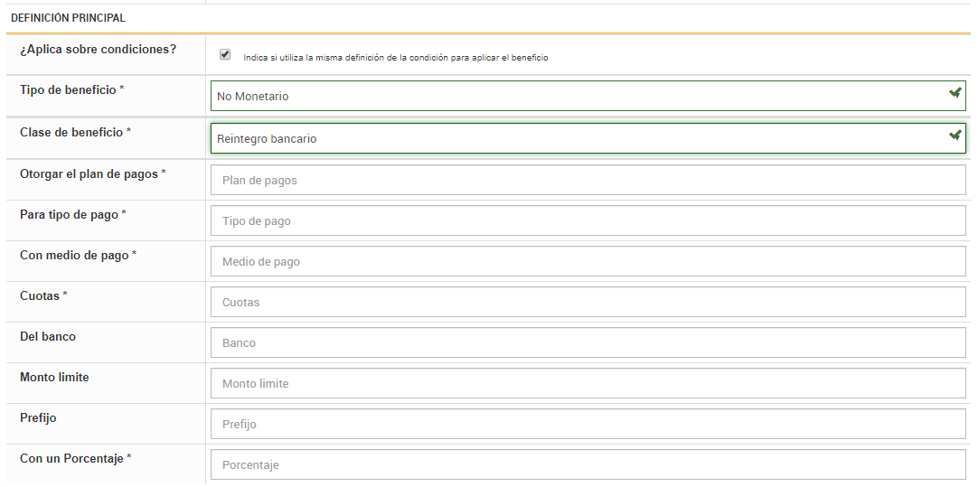 Cuando dentro del contexto de la transacción se cumpla con ambas condiciones simples, se accederá al beneficio definido en la promoción.