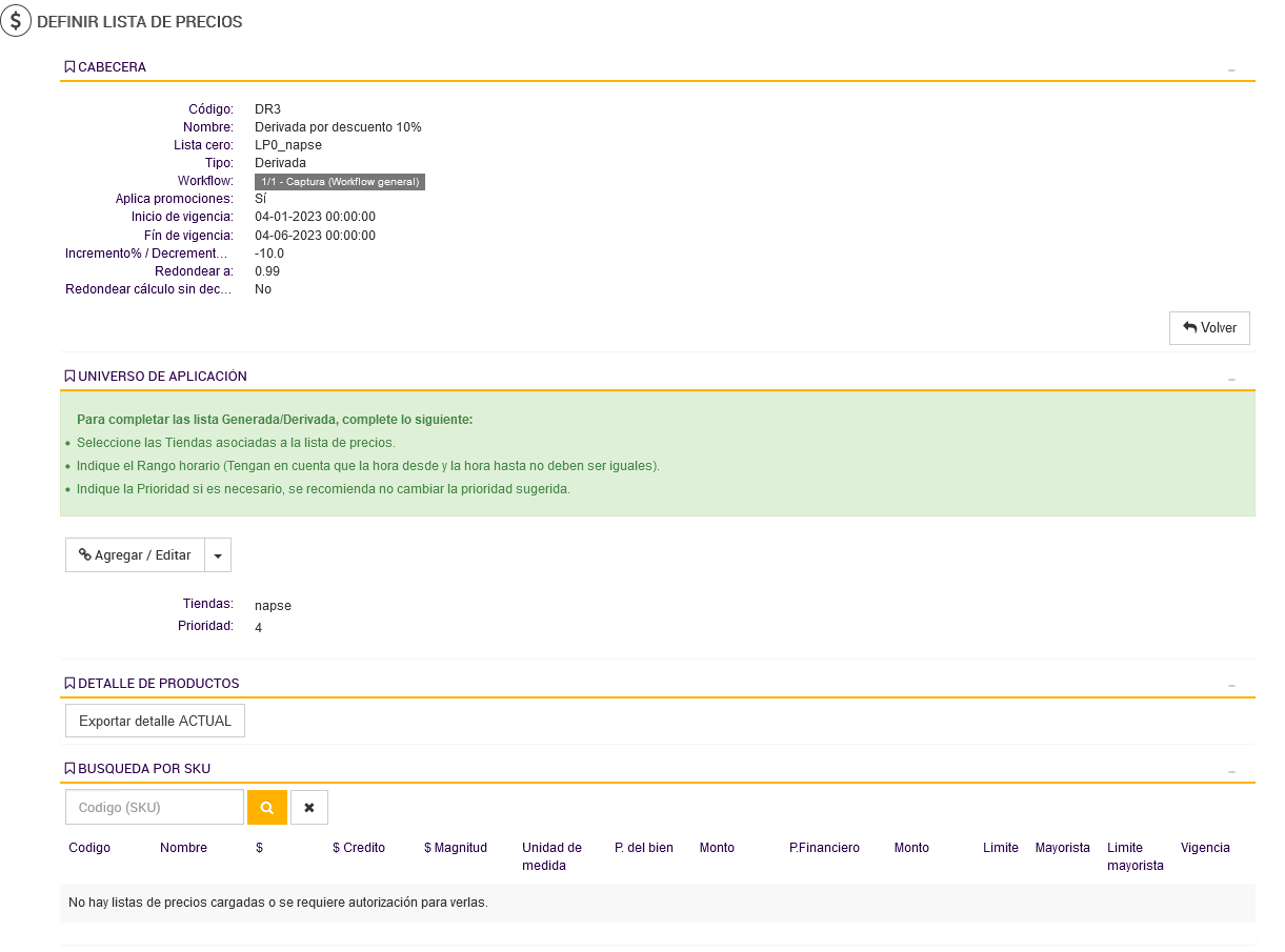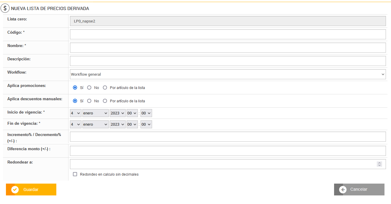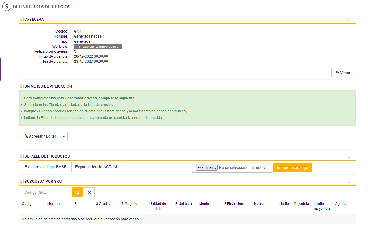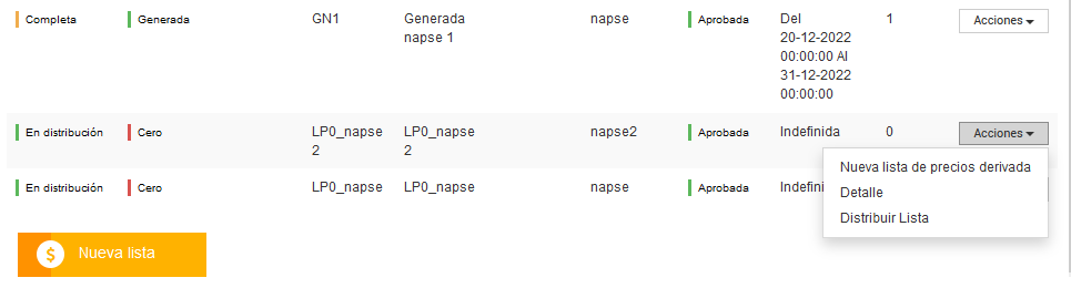 Se describe la operatoria para la creación y administración de Listas de Precios.
