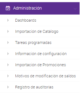 Contiene aquellas configuraciones especiales que se podrán realizar a través de la consola de administración de PROMO tales como altas de Unidades departamentales, Compañías, Regiones y Tiendas.