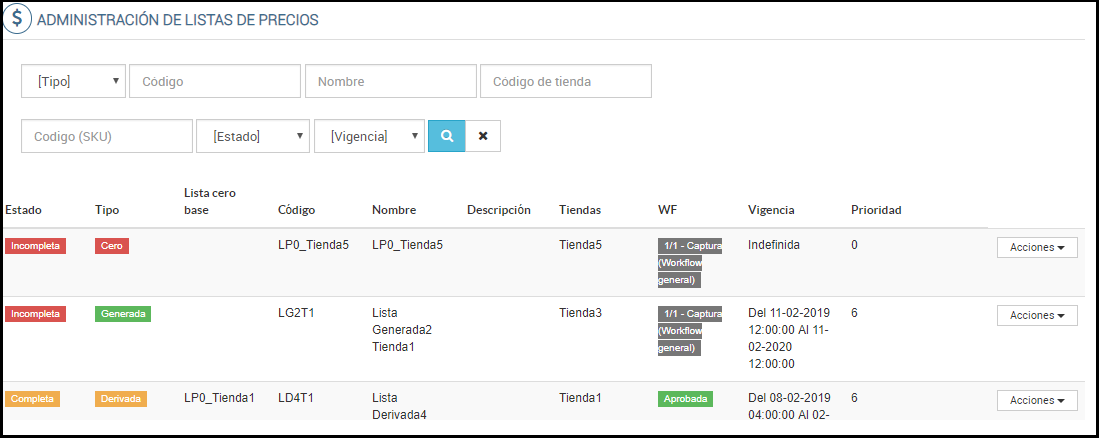 Se describe la operatoria para la creación y administración de Listas de Precios.