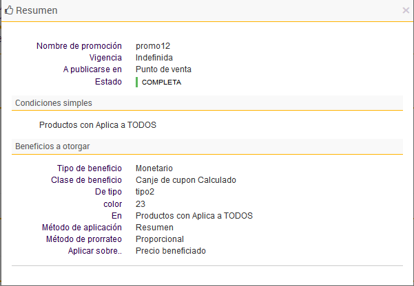 - La promoción Reportara participantes, por lo que el motor informara al punto de venta que elementos de la transacción ovacionaron la aplicación del beneficio.