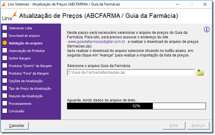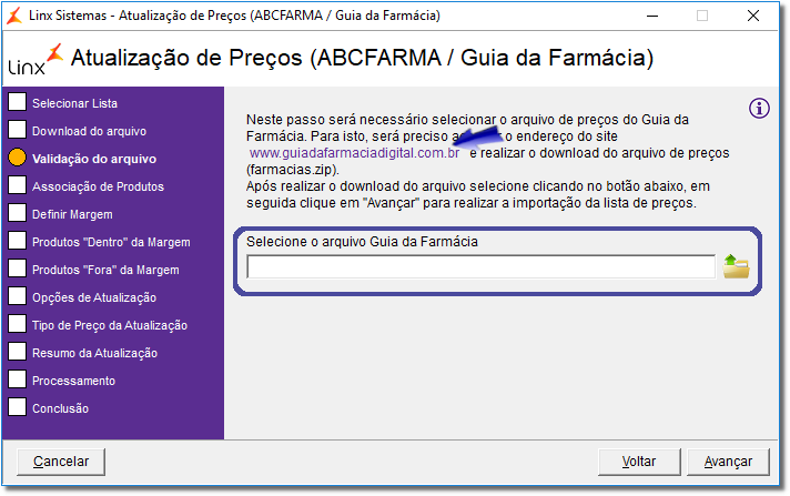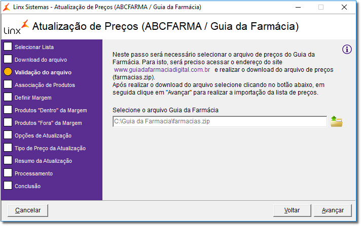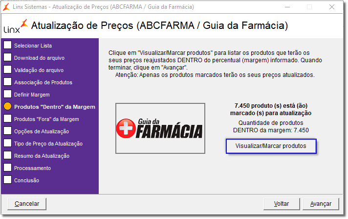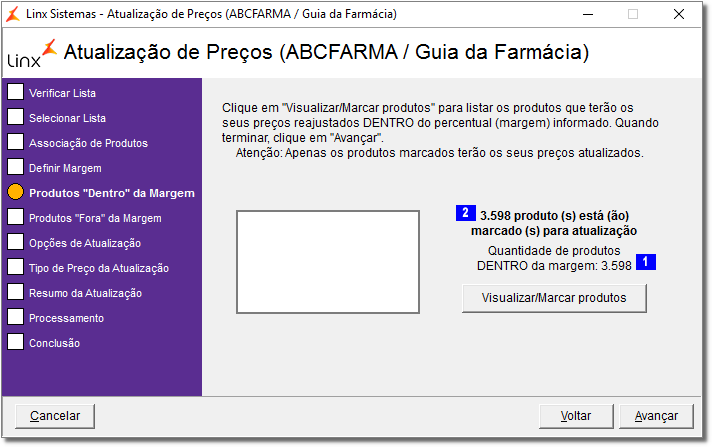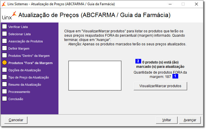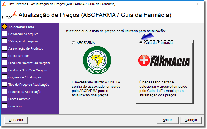 Se a lista selecionada for a ABCFarma verifique como utilizá-la através do artigo Atualização de Preços no Linx Farma Big - ABCFarma.