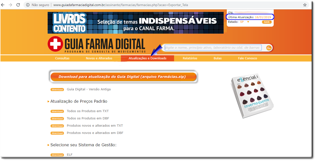 Para baixar o arquivo de atualização de preços do Guia da Farmácia Clique Aqui.