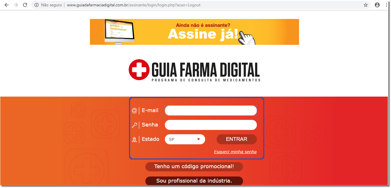 Informe o e-mail , a senha e o estado do usuário para fazer o download.