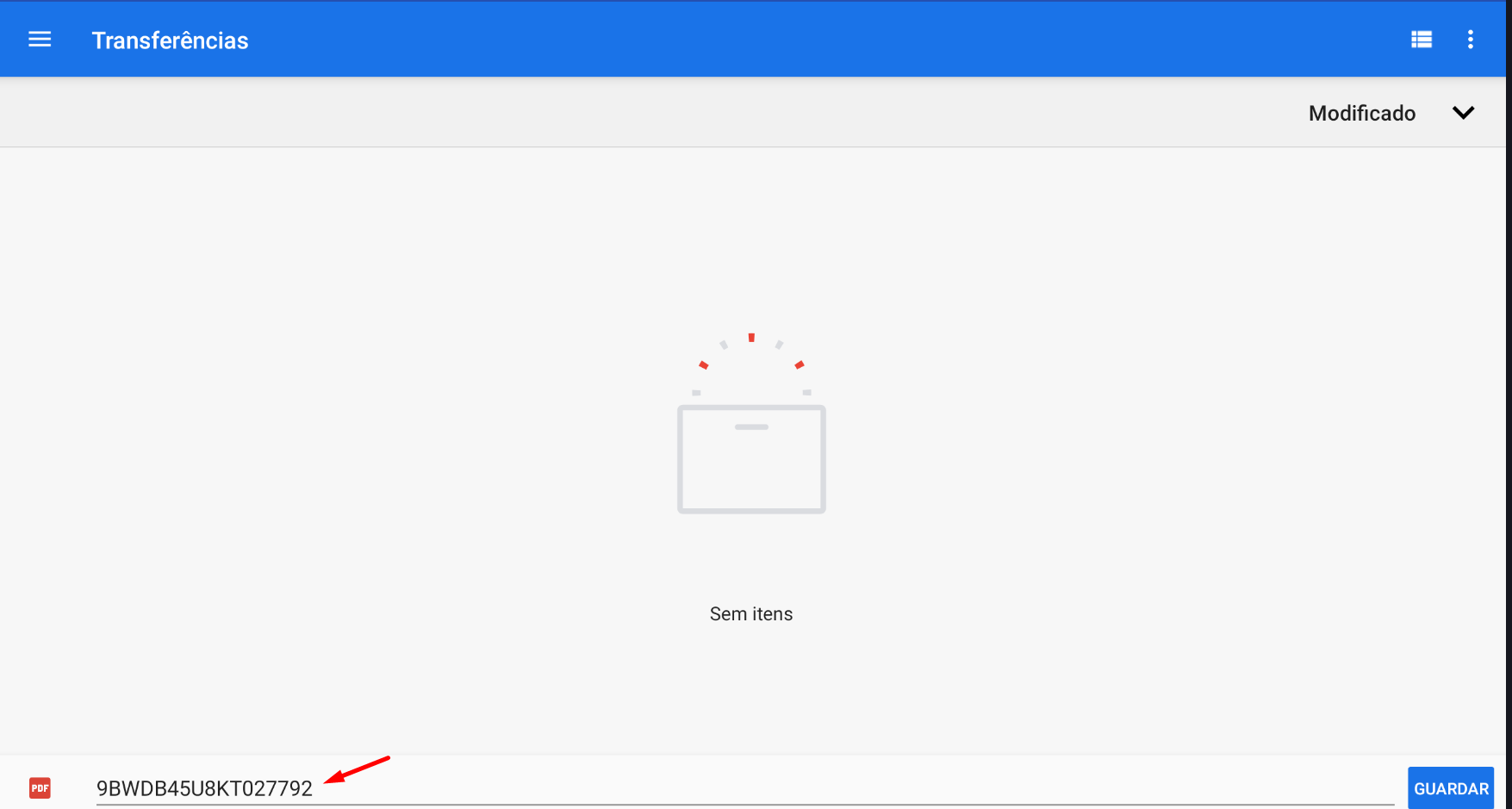 O arquivo .PDF será gerado com o número do chassi: