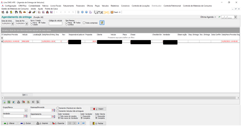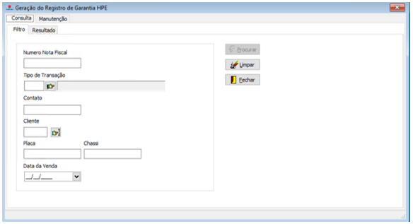 - Chassi: Busca pelo chassi do veículo cadastrada no LinxDMSHPE.