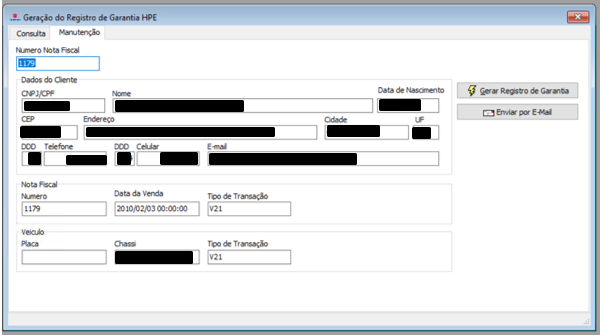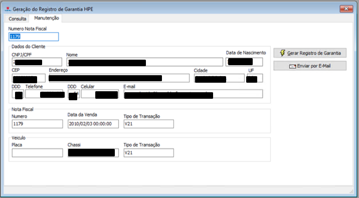 Consiste na geração do Registro de Garantia no processo de entrega de veículos novos.