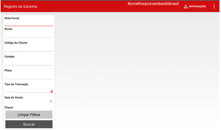 No "Registro de Garantia" foram criadas algumas opções de filtros.