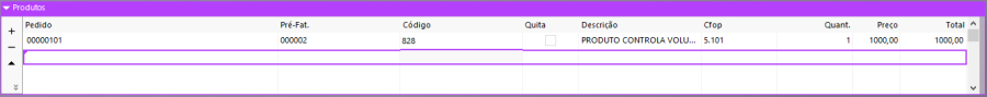 Separados os volumes, já é possível fazer a conferência do pré-faturamento e faturar o pedido de venda. Ao acessar o pré-faturamento para conferência, perceba que na tela estão laçados os volumes do produto e não o produto acabado.