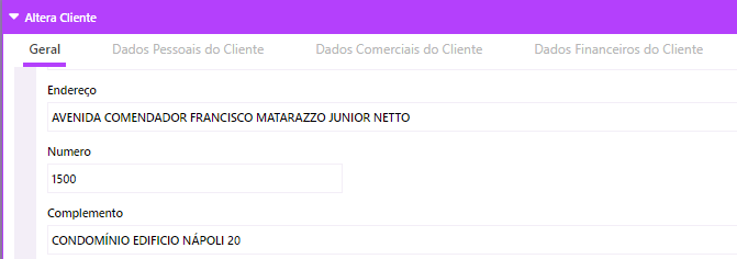 Na consulta do cadastro do cliente, podemos ver que seu endereço de entrega possui mais de 40 caracteres.