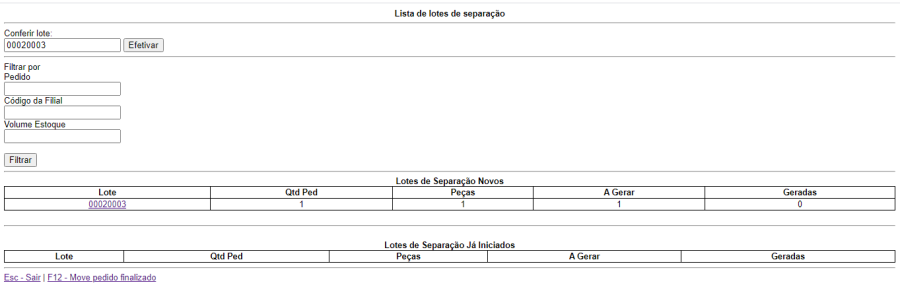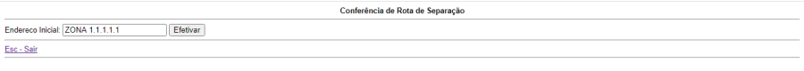 Ao selecionar o lote, o sistema inicia a rota de conferência, solicitando o endereço inicial.