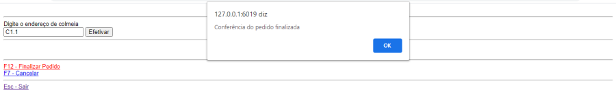A seguir, finalize o pedido, encerrando a rota de conferência.