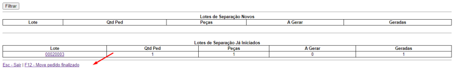 Como havia apenas um produto no pedido, podemos finalizar a conferência e mover o pedido finalizado.