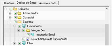 No Gerenciador de Usuários, liberar o link para acesso a importação da planilha.