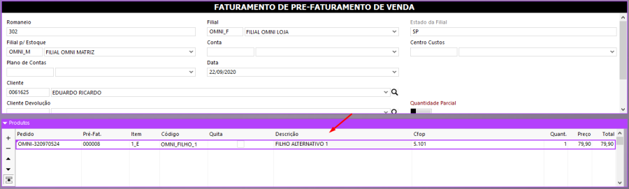 E finalmente, podemos faturar o pedido do cliente para entrega. No evento de faturamento, o sistema irá carregar somente o produto alternativo, que será impresso na nota fiscal para entrega ao cliente.