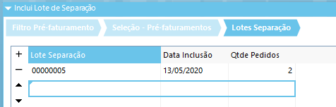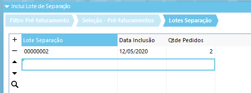 Marque os pedidos de venda que serão incluídos no lote e clique em Próximo. Observe que o sistema criou um lote, em nosso exemplo, contendo dois pedidos de venda. Novamente, clique em Próximo para finalizar.