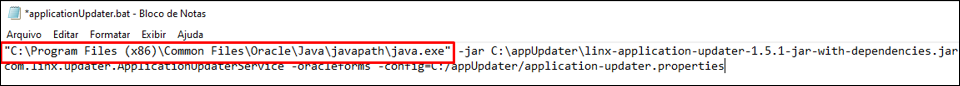 2.2. C:\AppUpdater\appliccationUpdater.bat → Substituir pelo caminho de instalação do Java 7 no computador do pdv.