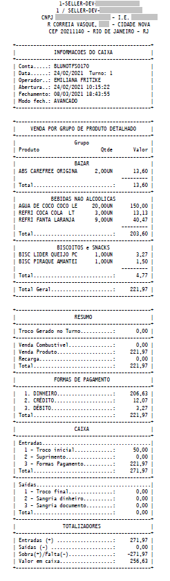 Após a identificação do pagamento, o Totem fará a impressão do documento fiscal e do comprovante da transação, conforme exemplo abaixo: