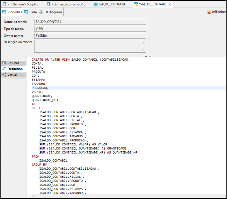 Alterado view materializada SALDO_CONTABIL, inserido a condição \[newaggregation\] com isso ela deixa de ser a tabela SALDO_CONTABIL e é criado a tabela ISALDO_CONTABIL