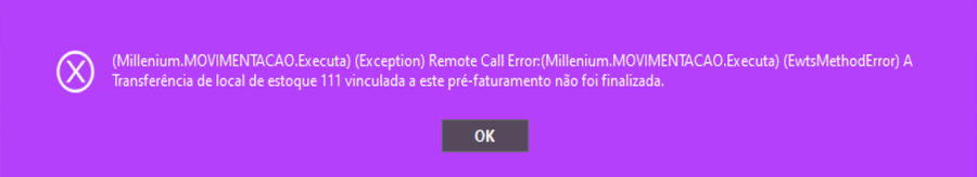 Desenvolvimento Millen-13032 – Transferência de local de estoque ao quitar pré-faturamento