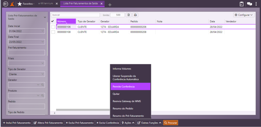 Permitir conferência de pré-faturamento de saída