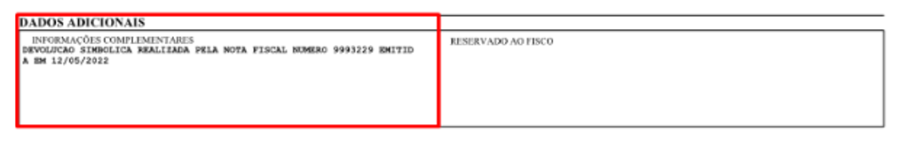 Alterado a observação nos dados adicionais da nota de transferência simbólica, sendo adicionado o número da nota fiscal e sua data de emissão.