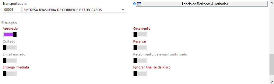 • Na etapa 'Incluindo o pedido de venda', o pedido de venda deve estar com a flag Aprovado marcada. Do contrário, na etapa da 'Liberação para Conferência Automática', o sistema apresentará mensagem de erro, informando que o pedido de venda não foi aprovado.
