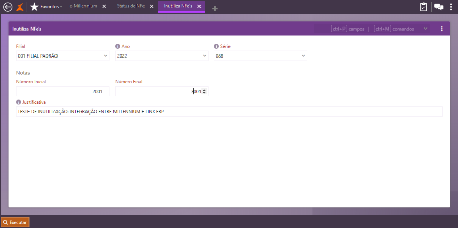 Desenvolvimento Millen-14019 - Integração Linx ERP (Notas Inutilizadas)