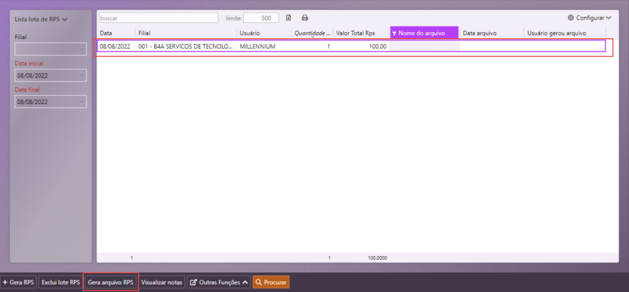 Para gerar o arquivo de lote RPS, siga as etapas abaixo: