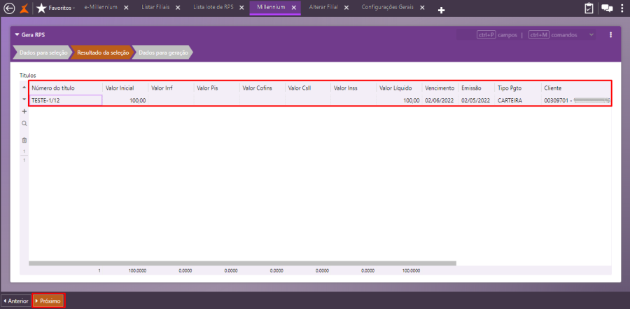 Todos os títulos referentes aos filtros serão apresentados na tela Resultado da seleção.