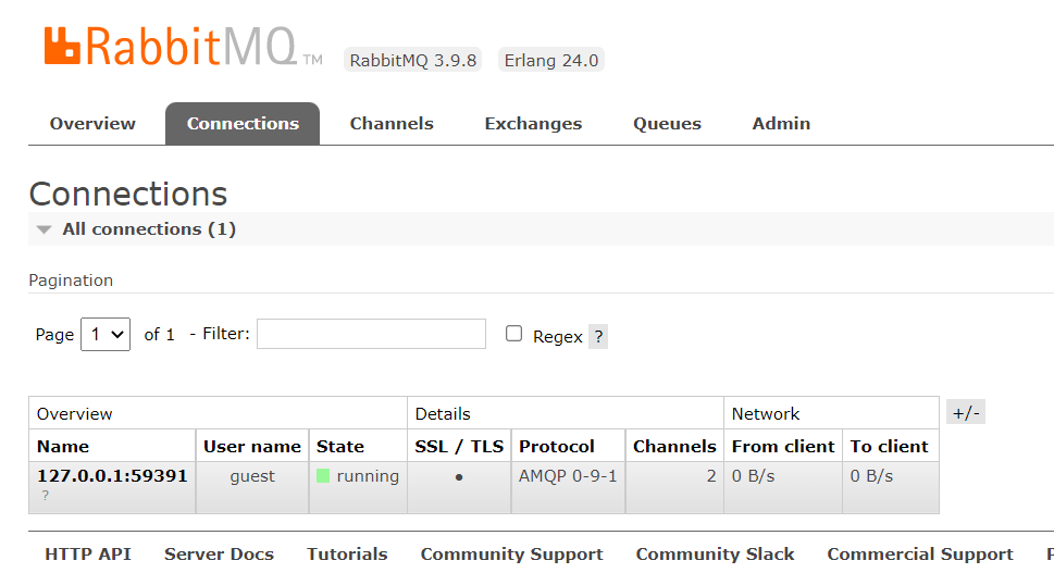 • Una vez que Api levante se podrá verificar en la consola de Rabbit las conexiones que se encuentran: