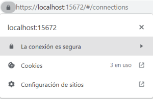 • Verificar que ahora para el port 5671 aparece 'amqp/ssl' ... 'over TLS' y la consola de rabbit aparece en el puerto 15672 con https