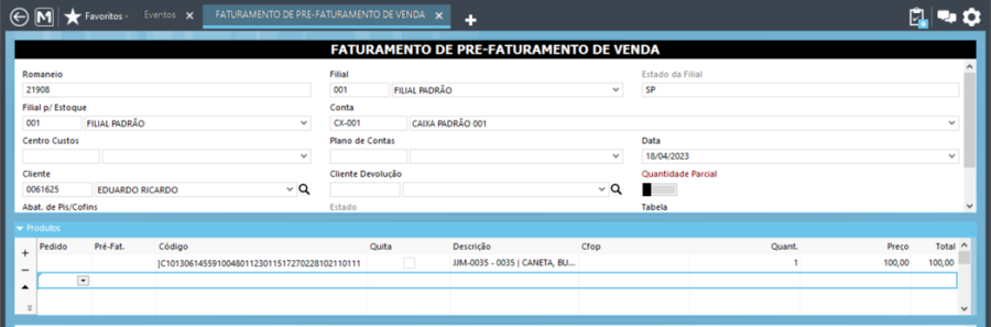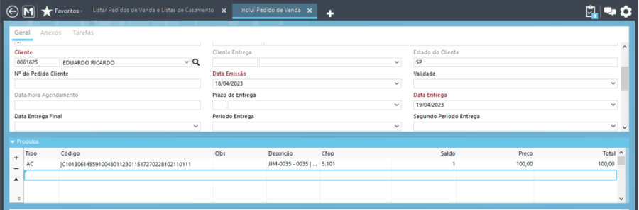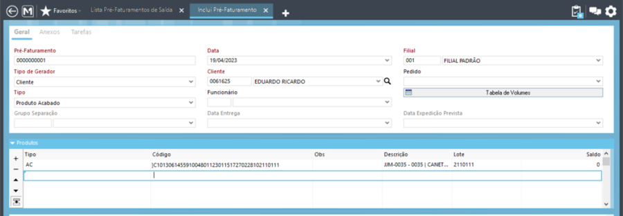 Vamos efetivar e observe que a informação do lote do produto foi preenchida automaticamente.